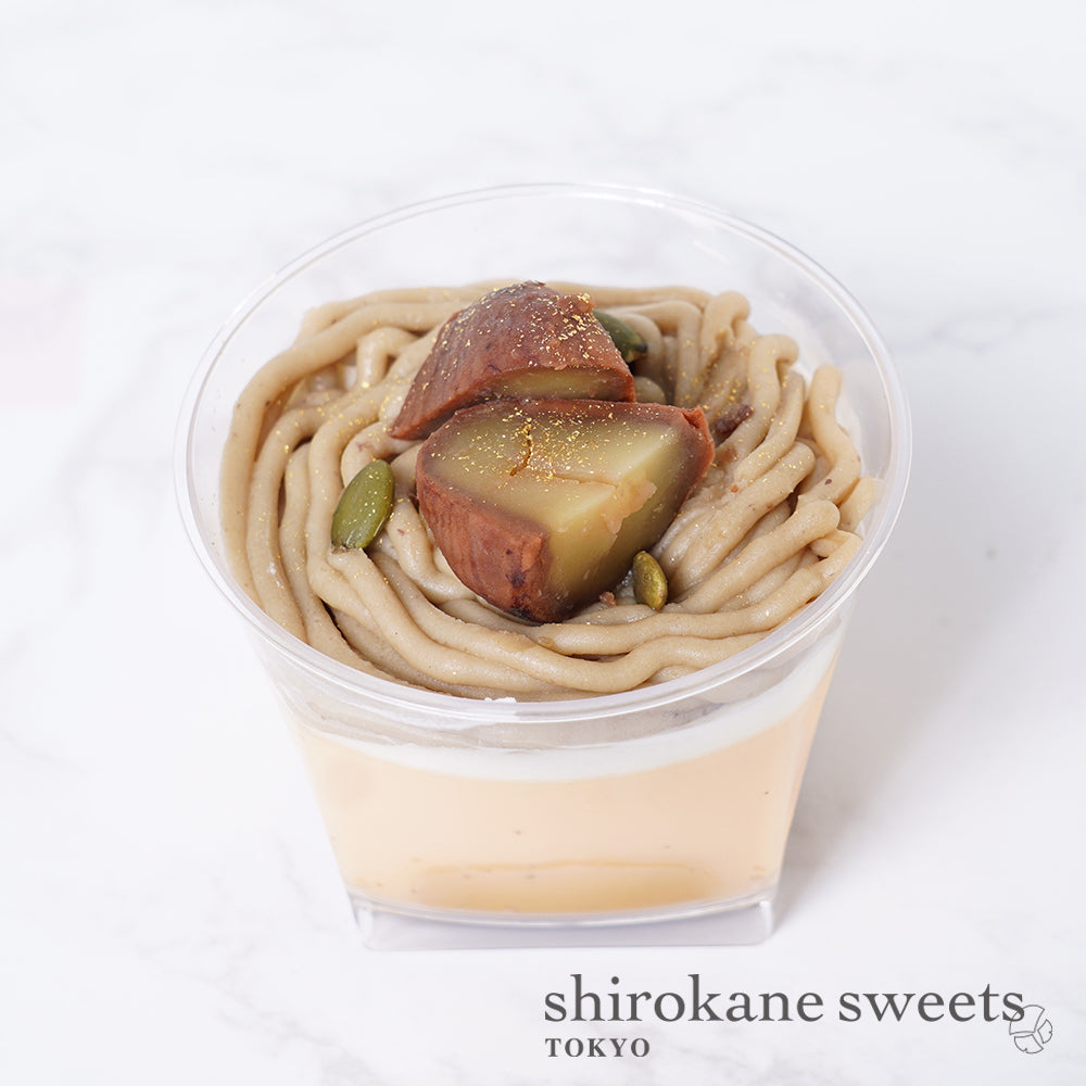 shirokane sweets TOKYOは閑静な住宅街「白金台」の一角にあるの美味しい季節のフルーツと、原材料のこだわりがコンセプトのスイーツ専門店。白金台の代名詞「プラチナストリート」の名を冠した白金プラチナプリン。ねっとり濃厚な食感にこだわりながら作りあげたプリンに、口溶けなめらかなモンブランを冠し、大粒の「皇室献上栗 山江栗」を乗せた大変贅沢な一品に仕上がっています。プリンとモンブランという老若男女誰もがホッと安心できる懐かしさすら感じる美味しさをお約束致します。食感と風味を重視して上品に仕上げたshirokane sweets TOKYOの逸品です。