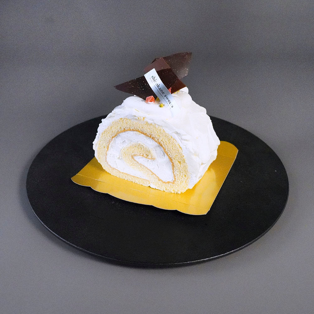 shirokane sweets TOKYOは閑静な住宅街「白金台」の一角にあるの美味しい季節のフルーツと、原材料のこだわりがコンセプトのスイーツ専門店が作る最高級のロールケーキ(ハーフサイズ)。ふわふわのシフォン生地に搾乳種をジャージーに限定したジャージークリームの豊かなコクが包まれているだけでなく、生地の外側にクリームを追いナッペすることで、生クリーム好きにはたまらない一品にしあがっています。一口食べれば、まず生クリームのミルキーな風味が広がり、奥深く、飽きのこない美味しさに。ジャージークリームクリームとふわふわのシフォンケーキとの相性も抜群で、1つ1つ手作りできれいに飾り付けられた最高級のロールケーキ ハーフ。滑らかで絹のような食感をお楽しみください。飾り部分は同梱されます。お客様のおこのみで、飾り付けをお楽しみください。午後のティータイムや、特別な日のデザートに、心安らぐひとときを運んでくれることでしょう。幅13.5cm×奥行8cm×高さ11cm(※飾りなし高さ:約9�p)