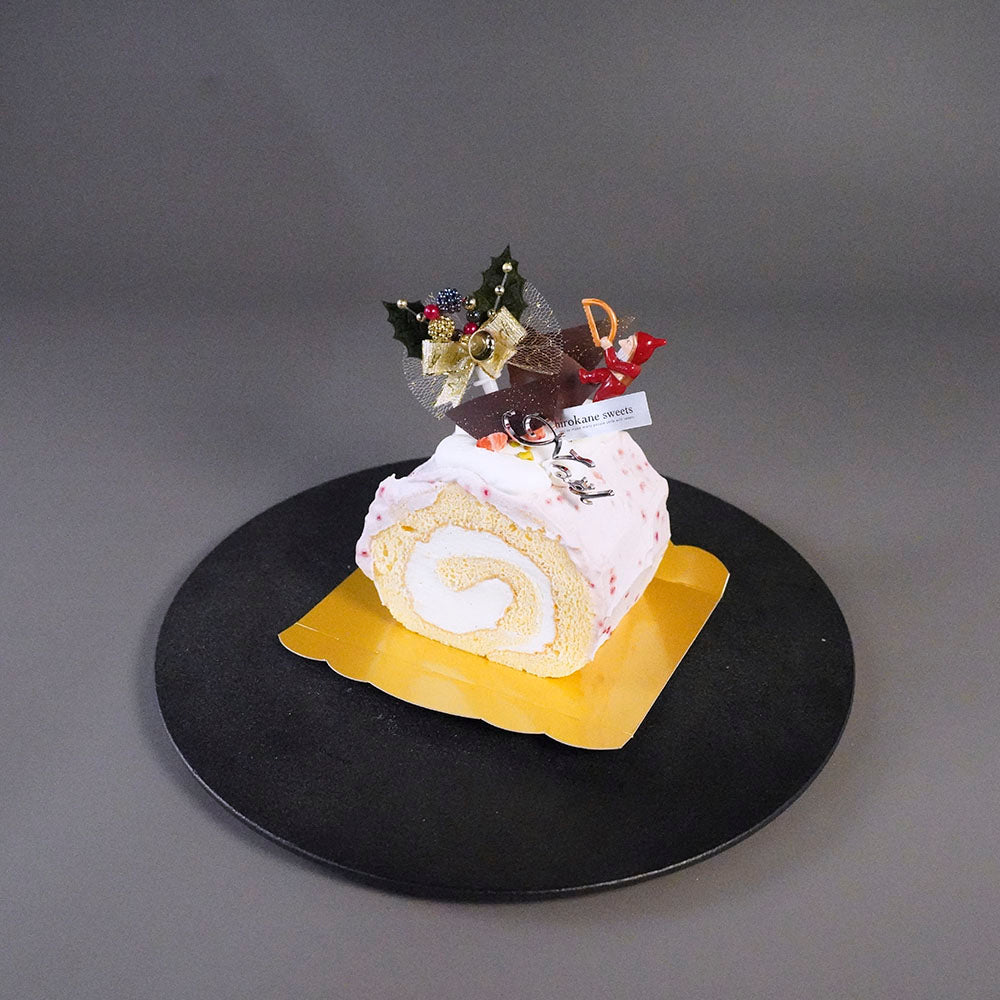 shirokane sweets TOKYOは閑静な住宅街「白金台」の一角にあるの美味しい季節のフルーツと、原材料のこだわりがコンセプトのスイーツ専門店が作る最高級クリームロールケーキ。ふわふわのシフォン生地に搾乳種をジャージーに限定したジャージークリームの豊かなコクが包まれているだけでなく、生地の外側に酸味ワンポイントが際立つ苺の生クリームを追いナッペすることで、甘さと酸味のバランスが取れた一品にしあがっています。一口食べれば、苺の酸味が口の中で広がり、生クリームのミルキーな風味が酸味を包み込みます。ジャージークリームクリームとふわふわのシフォンケーキとの相性も抜群で、1つ1つ手作りできれいに飾り付けられた最高級のブッシュドノエル ハーフサイズ。滑らかで絹のような食感をお楽しみください。飾り部分は同梱されます。お客様のおこのみで、飾り付けをお楽しみください。午後のティータイムや、特別な日のデザートに、心安らぐひとときを運んでくれることでしょう。幅13.5cm×奥行8cm×高さ11cm(※飾りなし高さ:約9�p)