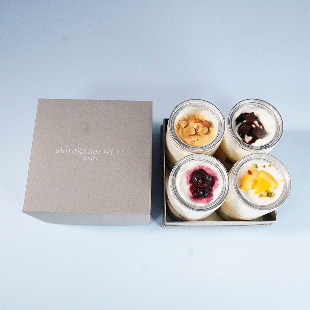 白金レアチーズ グラスケーキ4個入(プレーン・ショコラ・オレンジ・カシス 各1種)