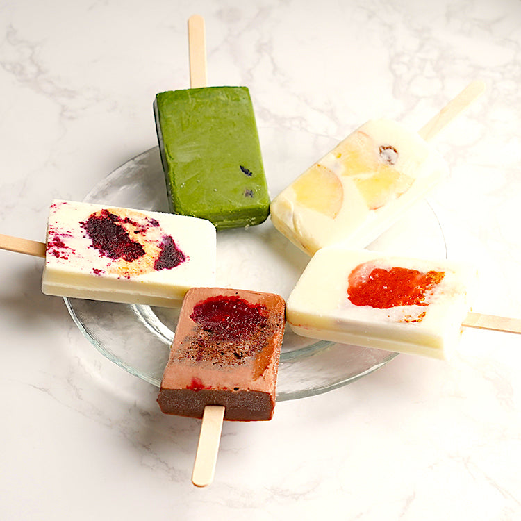 スイーツ専門店が作る、素材の味を活かしたアイスキャンディーを、1種ずつ5本セットにしました。